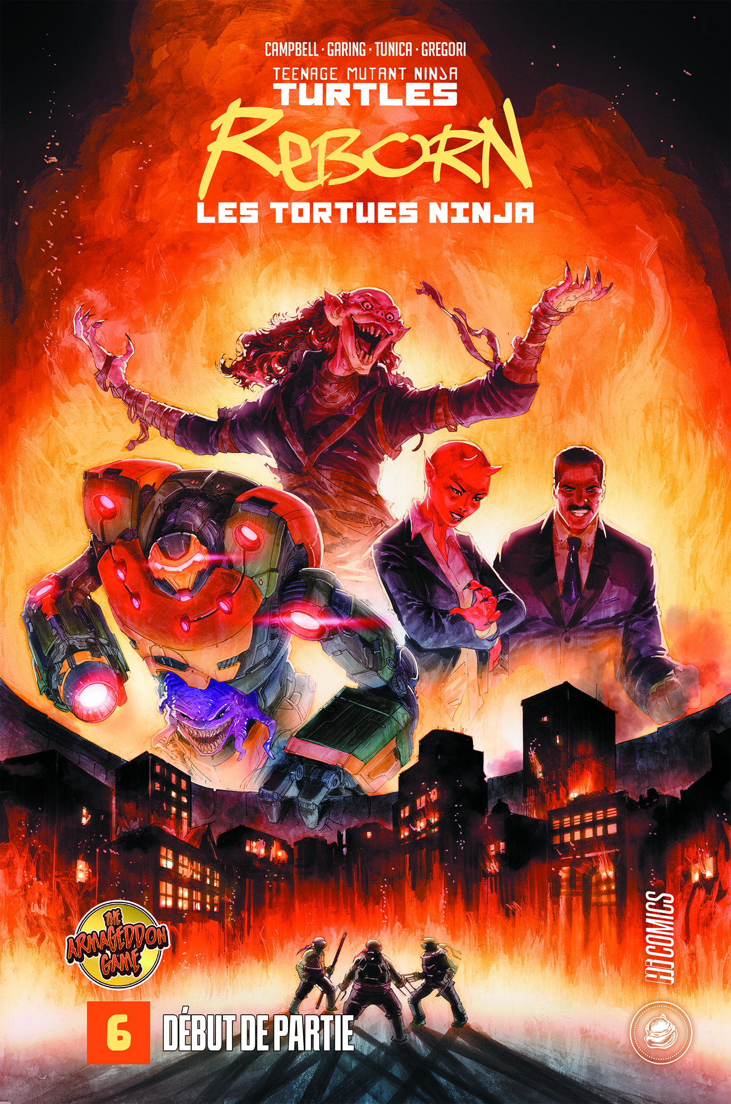 Dans Tortues Ninja Reborn Tome 6 – Armageddon Game : début de partie, la série de Sophie Campbell s’intègre au grand évènement « Armageddon Game », que nous publions sur un ensemble de trois tomes à forte pagination. Ce tome double comporte les numéros de la série régulière à suivre en parallèle du récit principal. Découvrez comment Shredder vient alerter les Tortues des terribles plans du Roi des Rats, puis comment les Tortues restées à New York vont résister aux machinations menées par Krang, Baxter Stockman et Madame Null.
